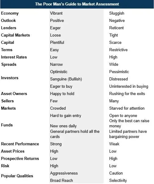 In Chapter 15 of The Most Important Thing, Howard Marks introduces “The Poor Man’s Guide to Market Assessment” by saying: