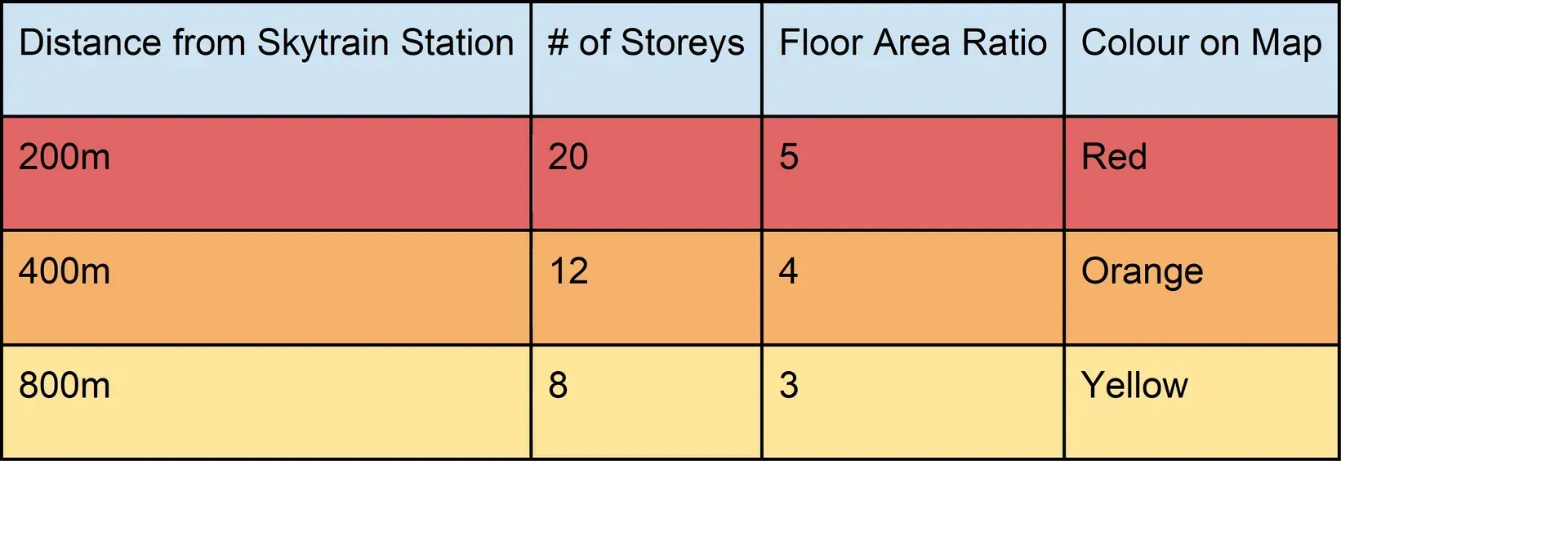Compare this with the Transit Oriented Development Areas introduced by Bill 47, which allows for higher density in a bullseye around transit stations, as follows: