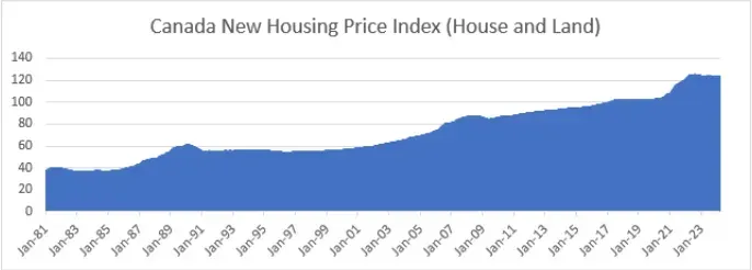 Source: Statistics Canada. Table 18-10-0205-01 New housing price index, monthly