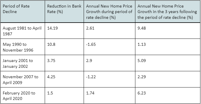 Why? In general, the Central Bank lowers interest rates in response to economic weakness. The low or negative GDP growth, higher unemployment and slower wage growth during these periods tends to slow home price growth more than the added affordability that comes with lower borrowing costs.