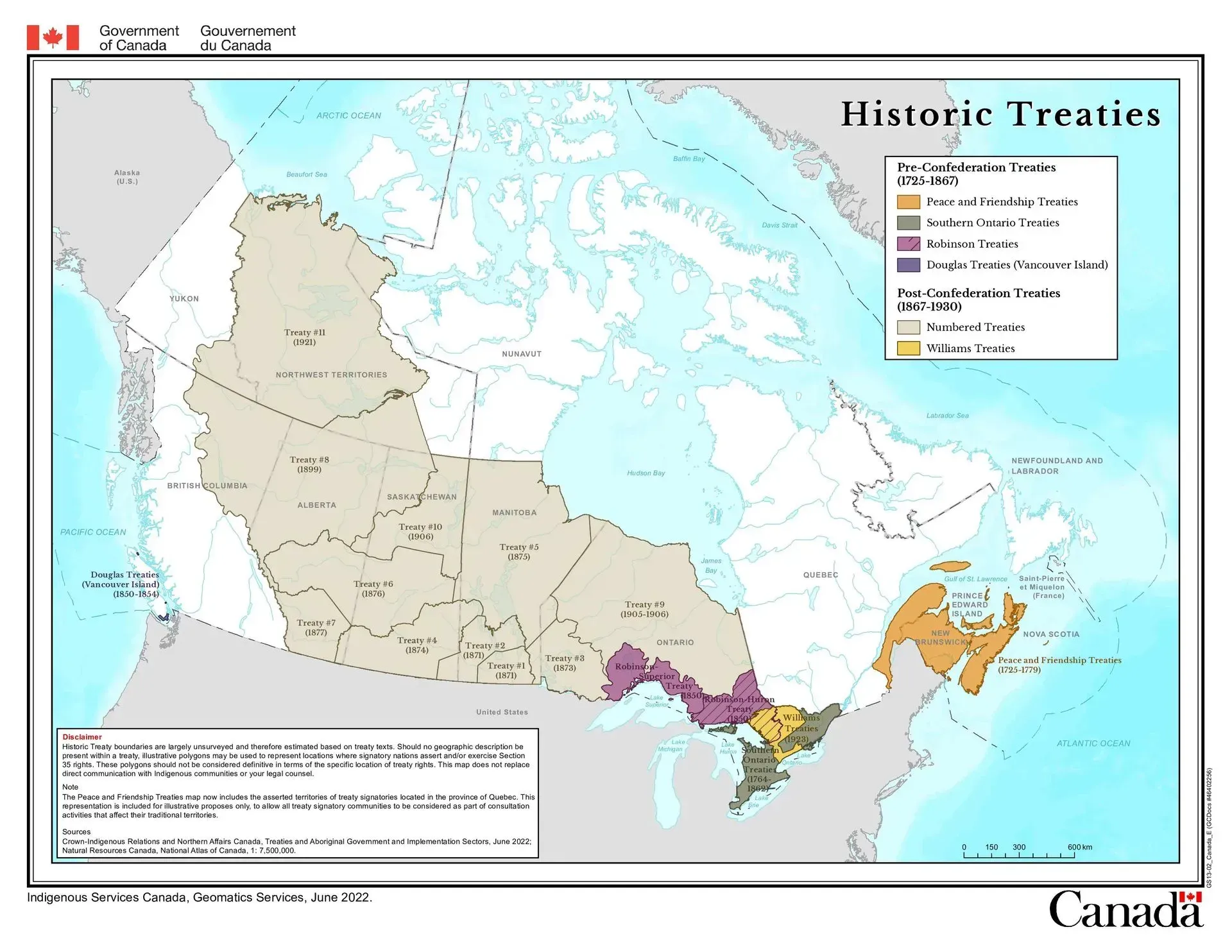 While there is nuance to this position, the primary effect of Canada’s historic treaties was the surrender or extinguishment of Aboriginal title to the Crown in exchange for reserve lands, annuities and other rights. This functionally means that at least in regards to this particular issue, Alberta, Saskatchewan, Manitoba, Ontario, and most of the Maritime provinces are more insulated from claims that Aboriginal title supplants fee simple title.