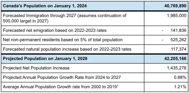 Demand in Canada is almost entirely driven by permanent and temporary immigration, which accounts for 97.6% of population growth in Canada (Statistics Canada, March 27 2024). That report states, “Most of Canada's 3.2% population growth rate stemmed from temporary immigration in 2023. Without temporary immigration, that is, relying solely on permanent immigration and natural increase (births minus deaths), Canada's population growth would have been almost three times less (+1.2%).”