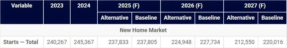 In the CMHC’s Housing Market Outlook Summer Update, CMHC cut housing start forecasts for every year from 2025–2027, with the 2027 baseline revised downward by 5.5% only five months after the previous forecast: